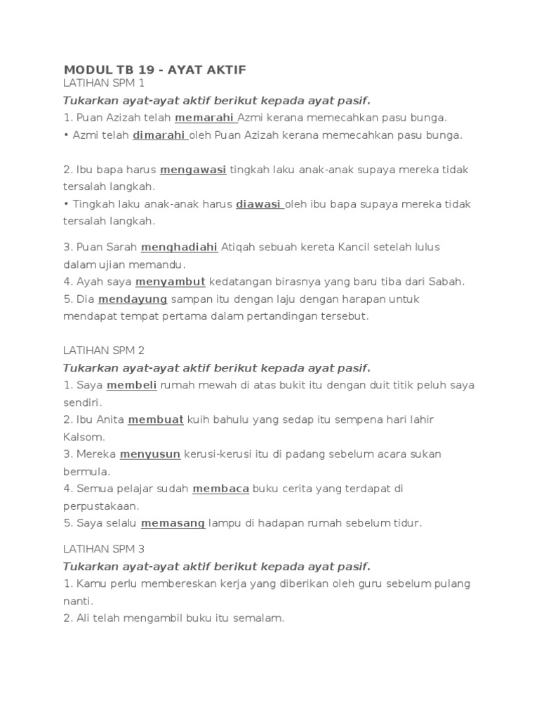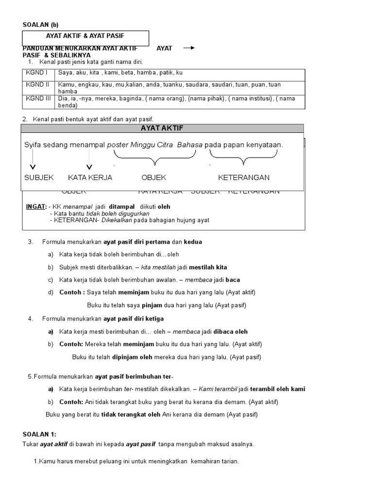 Ayat Aktif Ayat Pasif Spm / Seminar tip penguasaan teknik penulisan upsr, pt3, dan spm 3.. Ayat aktif kepada ayat pasif. Nota ayat aktif ayat pasif. Ayat aktif dan ayat pasif mp3 & mp4. Ayat aktif ayat pasif online activity for tahun 4,5,6. Puan azizah telah memarahi azmi kerana memecahkan pasu bunga.